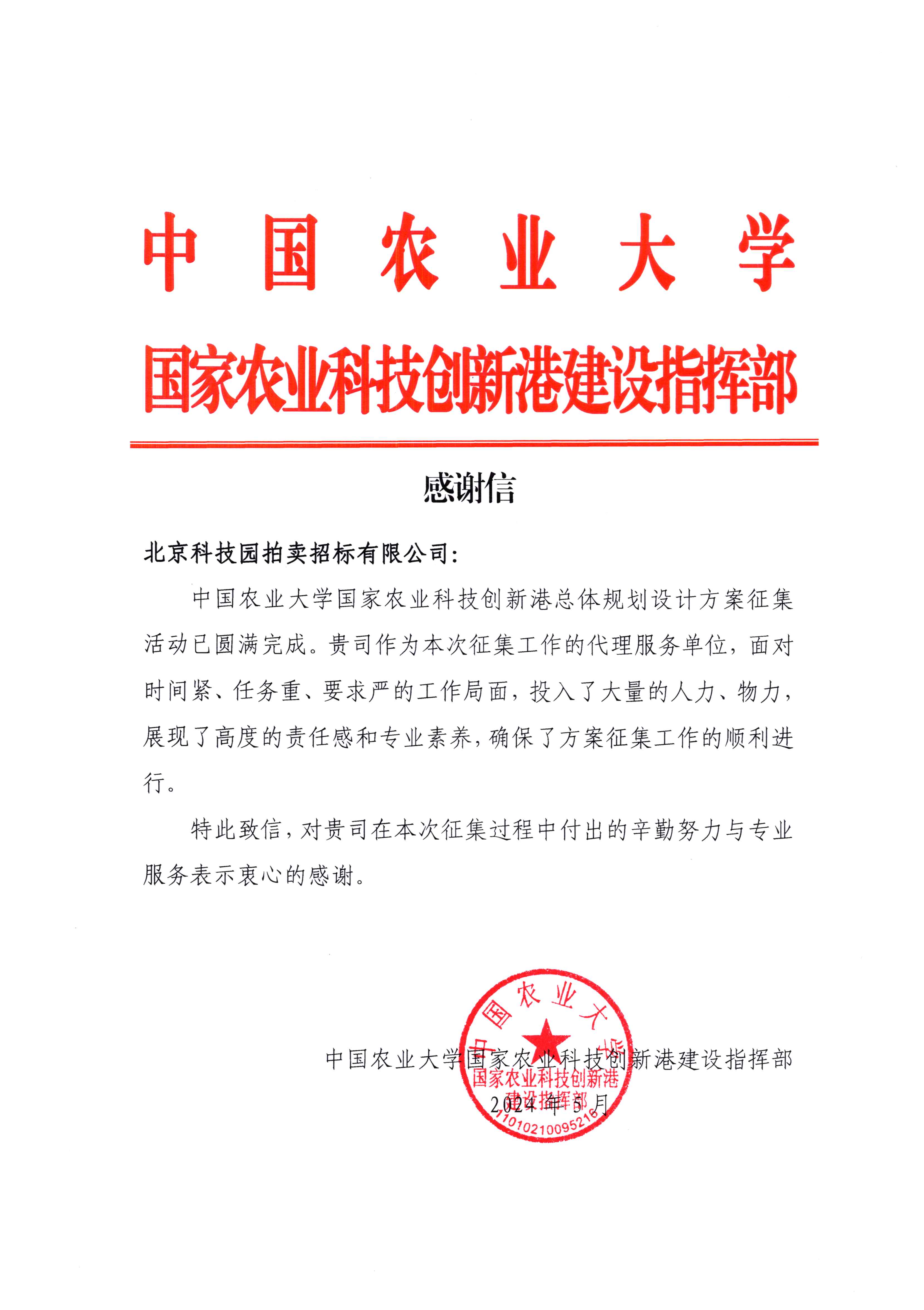 中國農業大學科技創新港(總體規劃設計方案)感謝信
