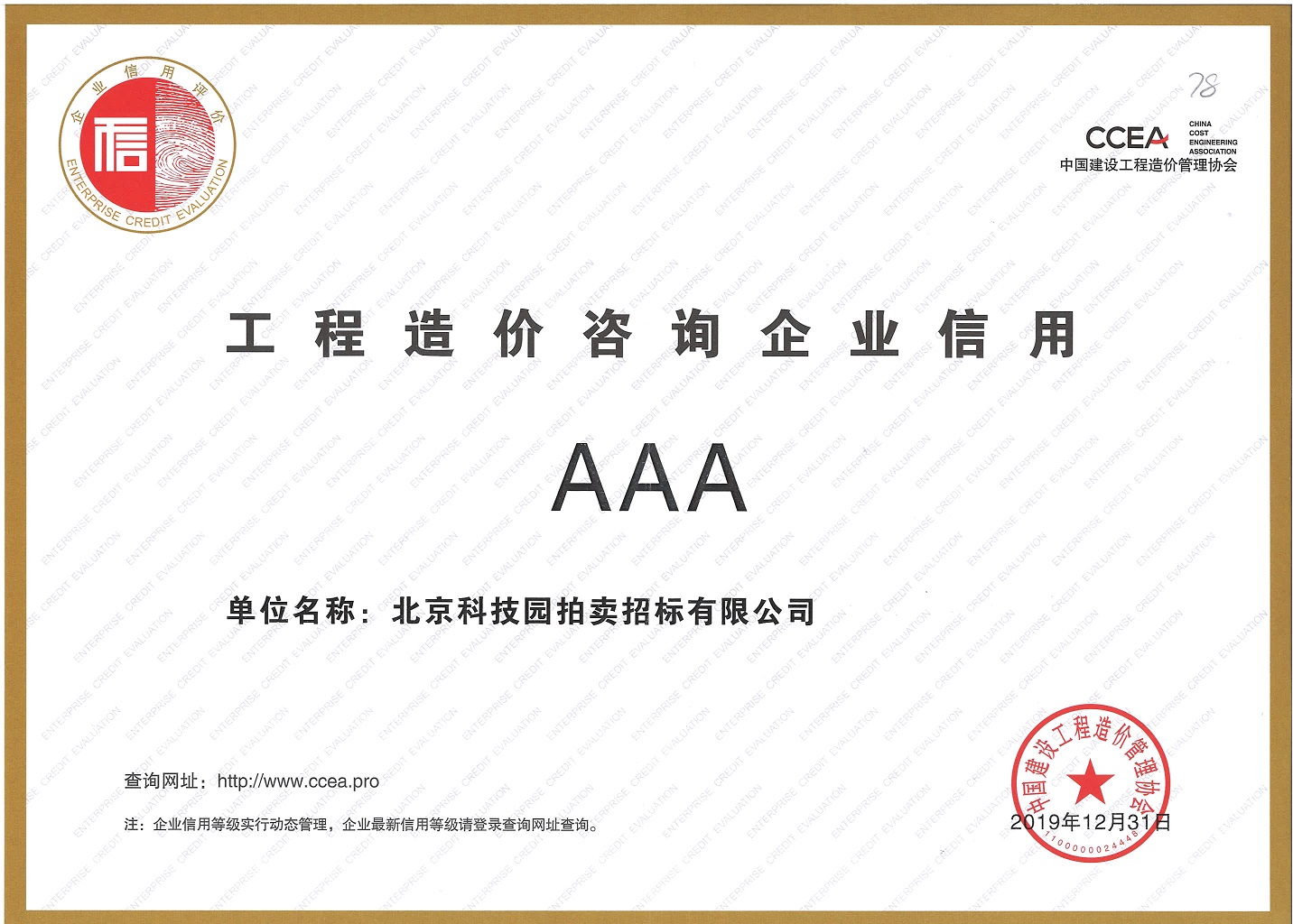 工程造價(jià)咨詢企業(yè)AAA信用證書