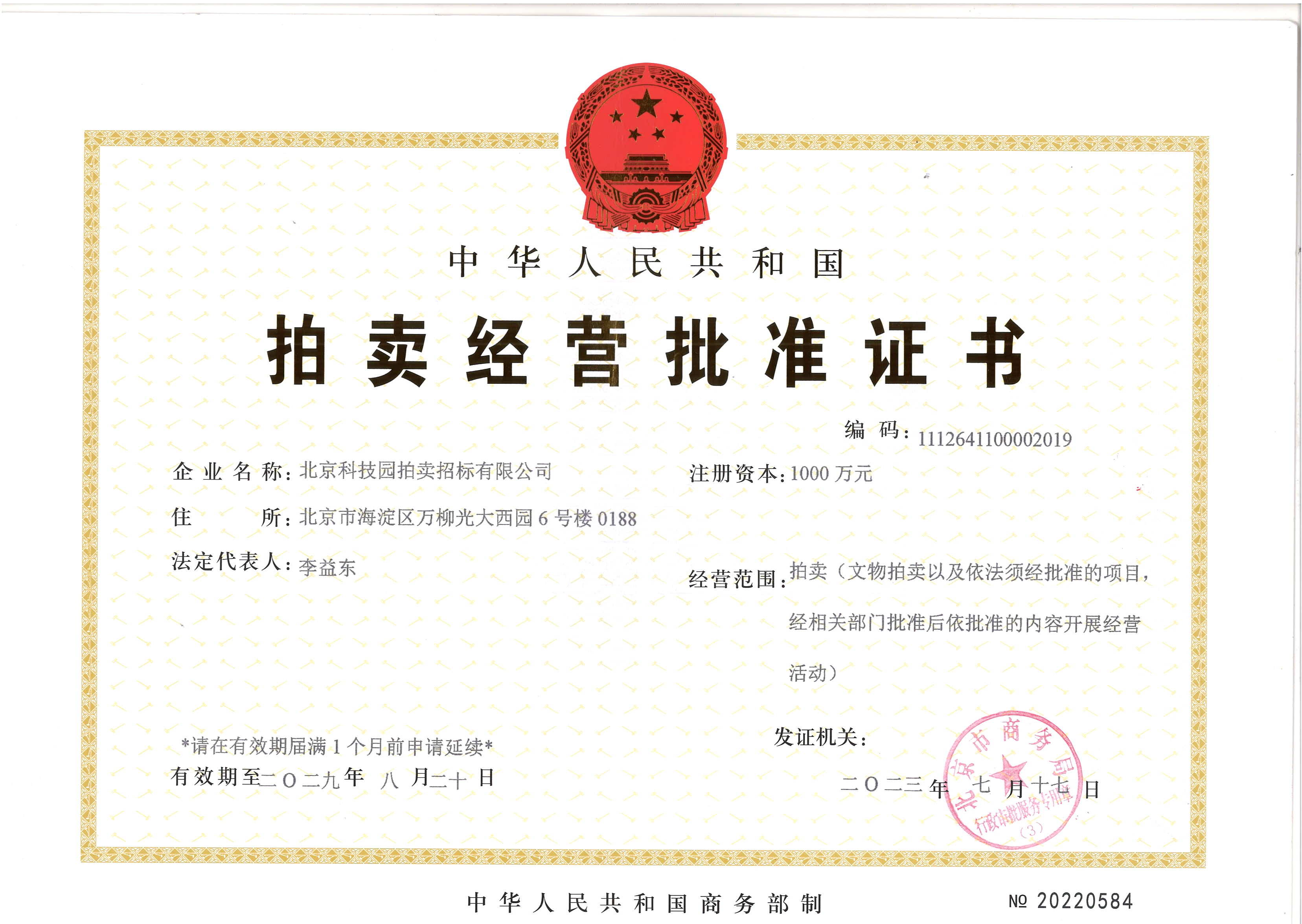 拍賣經(jīng)營(yíng)批準(zhǔn)證書