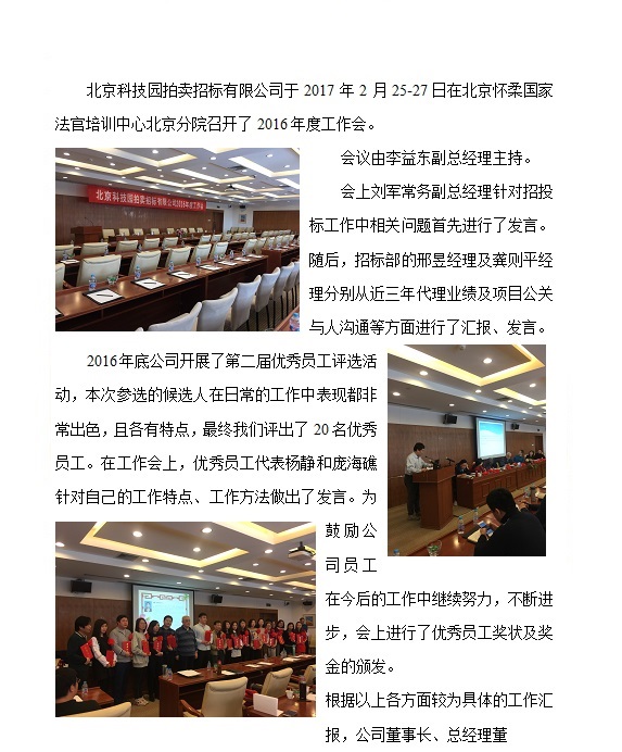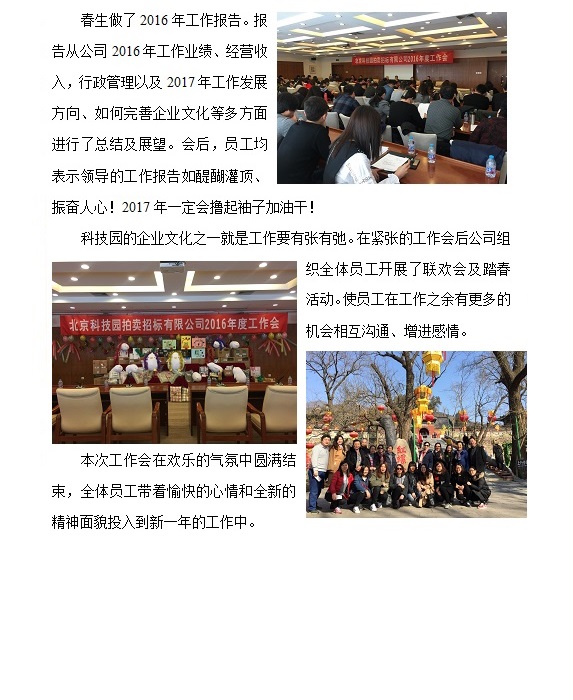 北京科技園拍賣招標(biāo)有限公司2016年度工作會(huì)簡(jiǎn)報(bào)