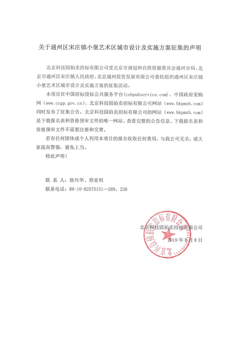 關于通州區宋莊鎮小堡藝術區城市設計及實施方案征集的聲明